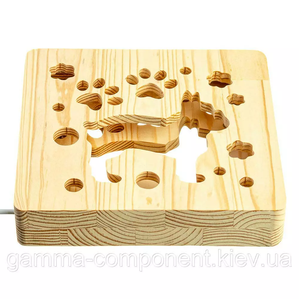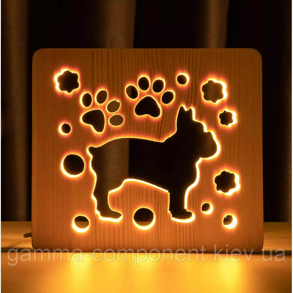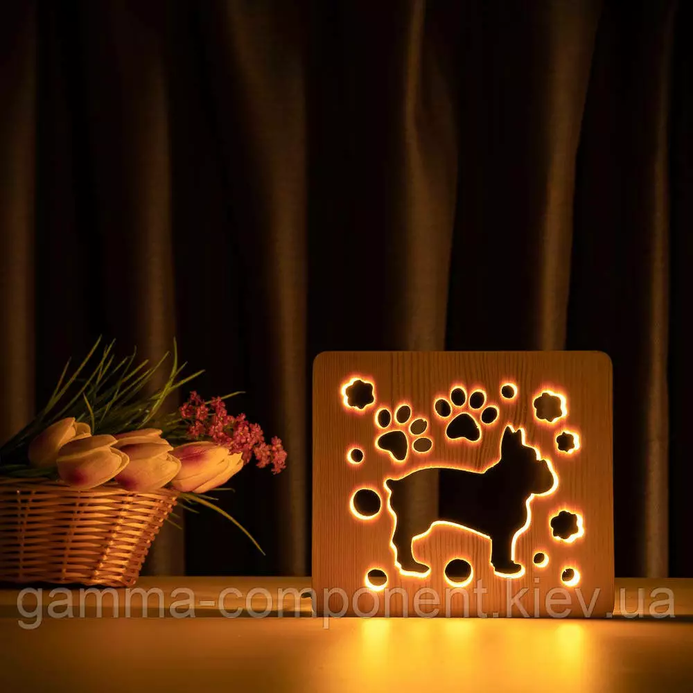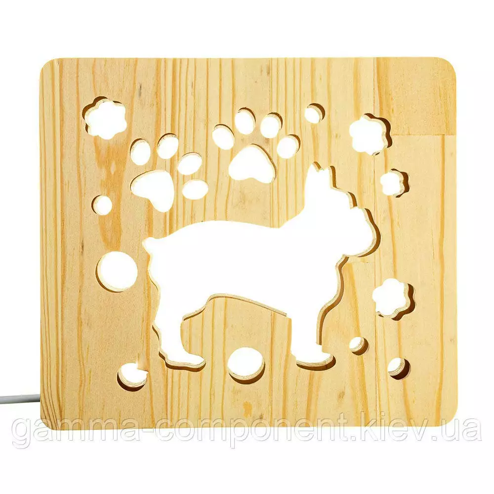 Світильник нічник з дерева LED "Собака бульдожка" з пультом і регулюванням світла, колір теплий білий