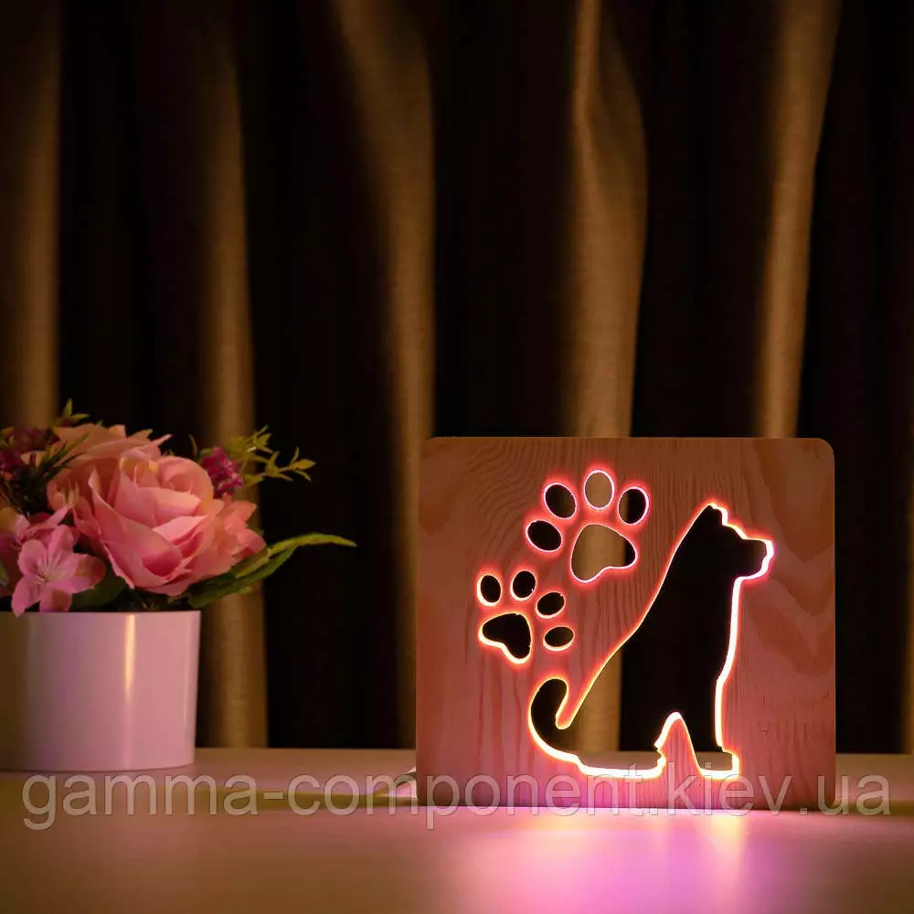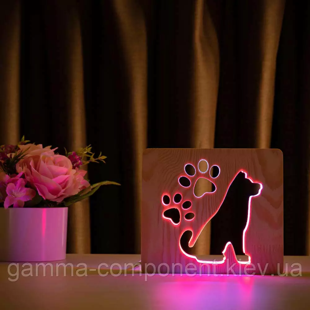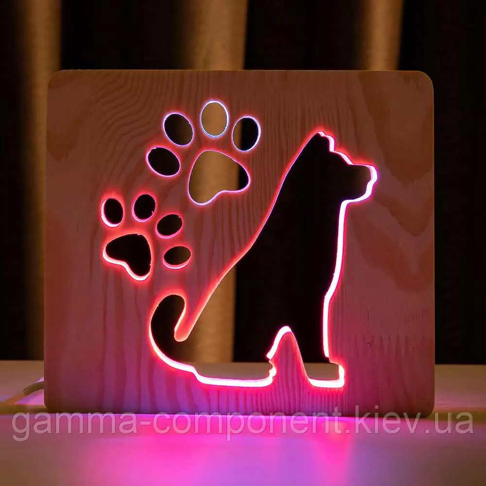 Світильник нічник з дерева LED "Собака і сліди" з пультом і регулюванням кольору, подвійний RGB