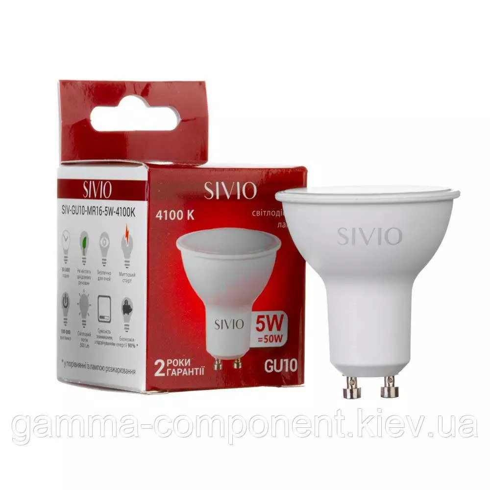 Лід лампа MR16 GU10 220V SIVIO – сучасна альтернатива люмінесцентних ламп (КЛЛ) і лампам розжарювання. Світлодіодна лампочка в 10 разів економніше лампи розжарювання і в 2 рази – люмінесцентної лампи. Відсутність ефекту мерехтіння не викликає зорової втоми. Лід лампи екологічні, так як не містять ртуті та інших шкідливих речовин, не вимагають спеціальної утилізації і не підданий небезпеки Ваше здоров'я і здоров'я Ваших близьких. Також світлодіодні лампи відрізняються довговічністю, їх термін служби досягає 30 000 годин!