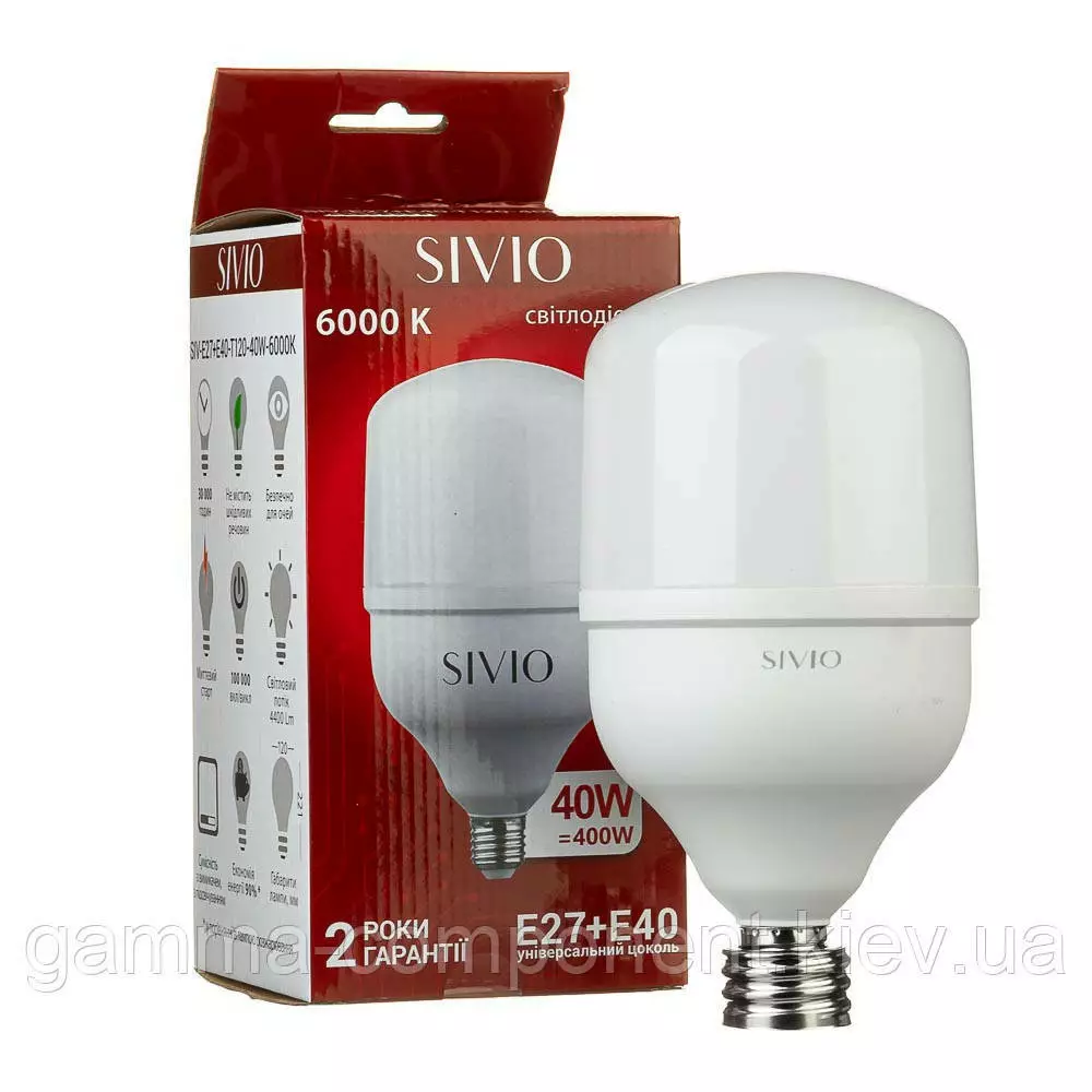 Світлодіодна лампа SIVIO Е27 + Е40 Т120 40W 6000K