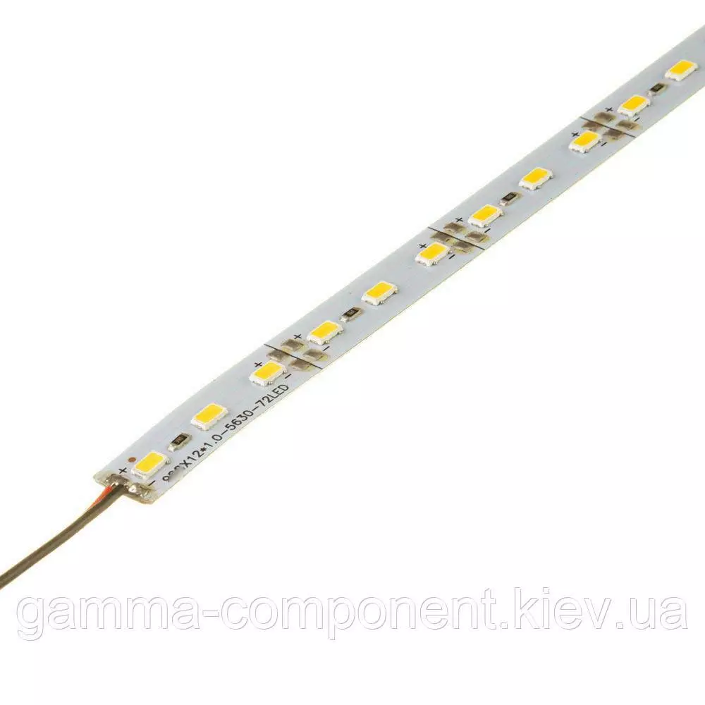 Світлодіоди типу SMD 5630 з щільністю розміщення 72 лід на метр випромінюють теплий білий світ з високим рівнем яскравості. Температура світіння дорівнює 3000К, кут світіння - 140°. Потужність споживання мінімальна – 18 вт на один метр лінійки.