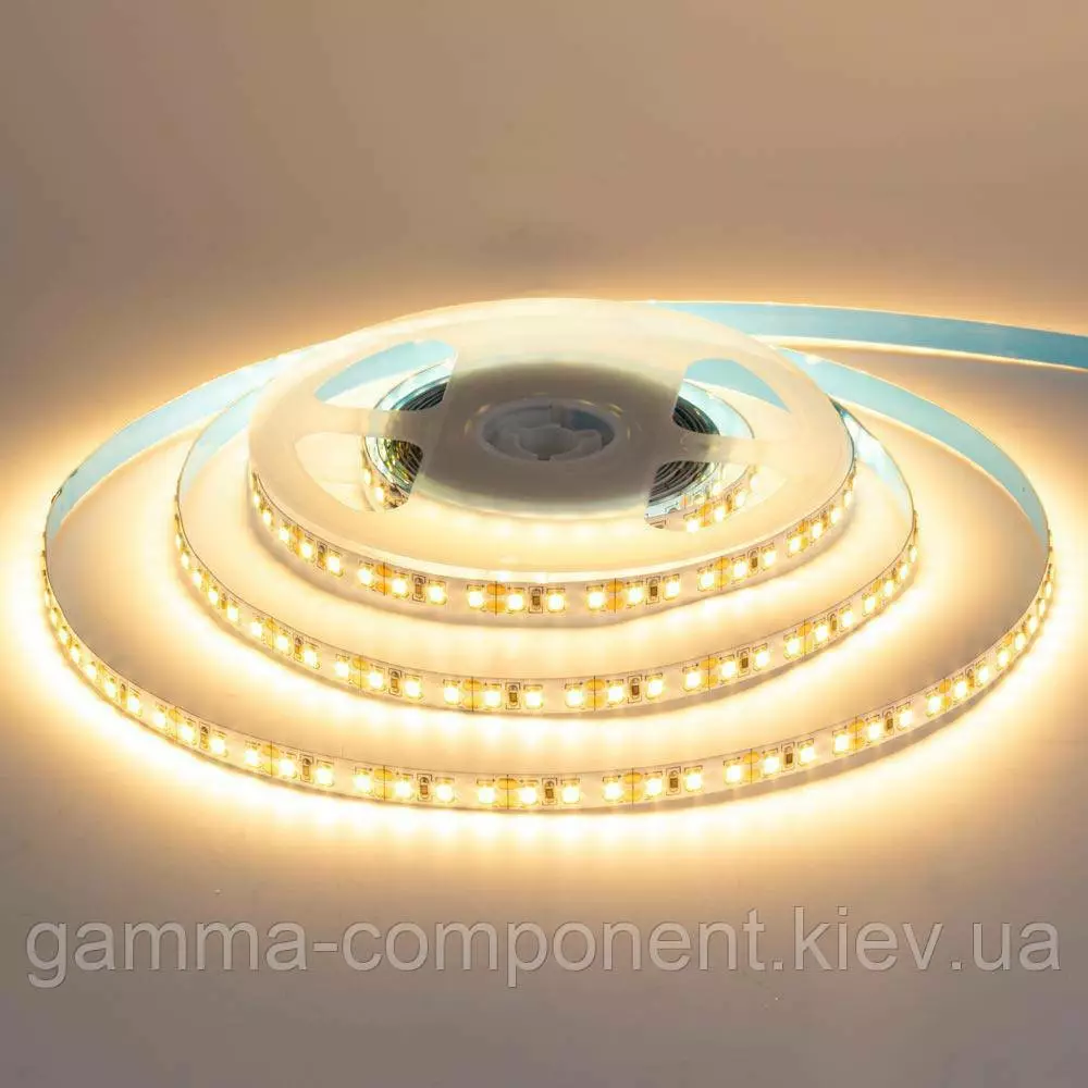 Світлодіодна стрічка теплого білого кольору з температурою світіння 3000-3500K зі світлодіодами SMD 2835 щільністю розміщення 120 лід на метр відрізняється невисокою споживаної потужністю 17Вт/м. Світловий потік досягає 2160 люменів. Ширина плати становить 10 мм, що дозволяє розміщувати її у важкодоступних місцях. Також лід стрічка характеризується безпечним для людини напругою 12 вольт.