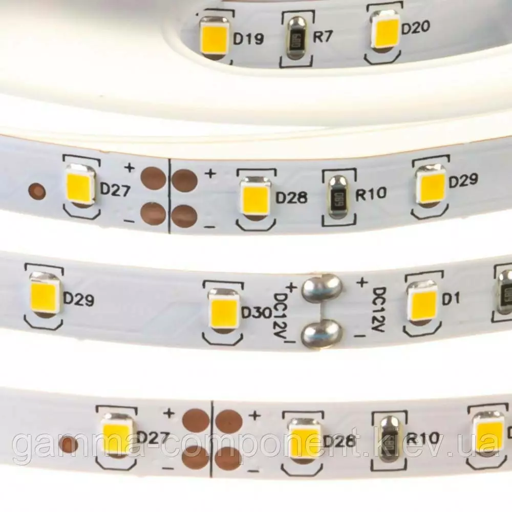 Світлодіодна стрічка теплого білого кольору з температурою світіння 3000-3500K зі світлодіодами SMD 2835 щільністю розміщення 120 лід на метр відрізняється невисокою споживаної потужністю 9Вт/м. Світловий потік - 1080 люменів. Ширина плати становить 10 мм, що дозволяє розміщувати її у важкодоступних місцях. Також лід стрічка характеризується безпечним для людини напругою 12 вольт.