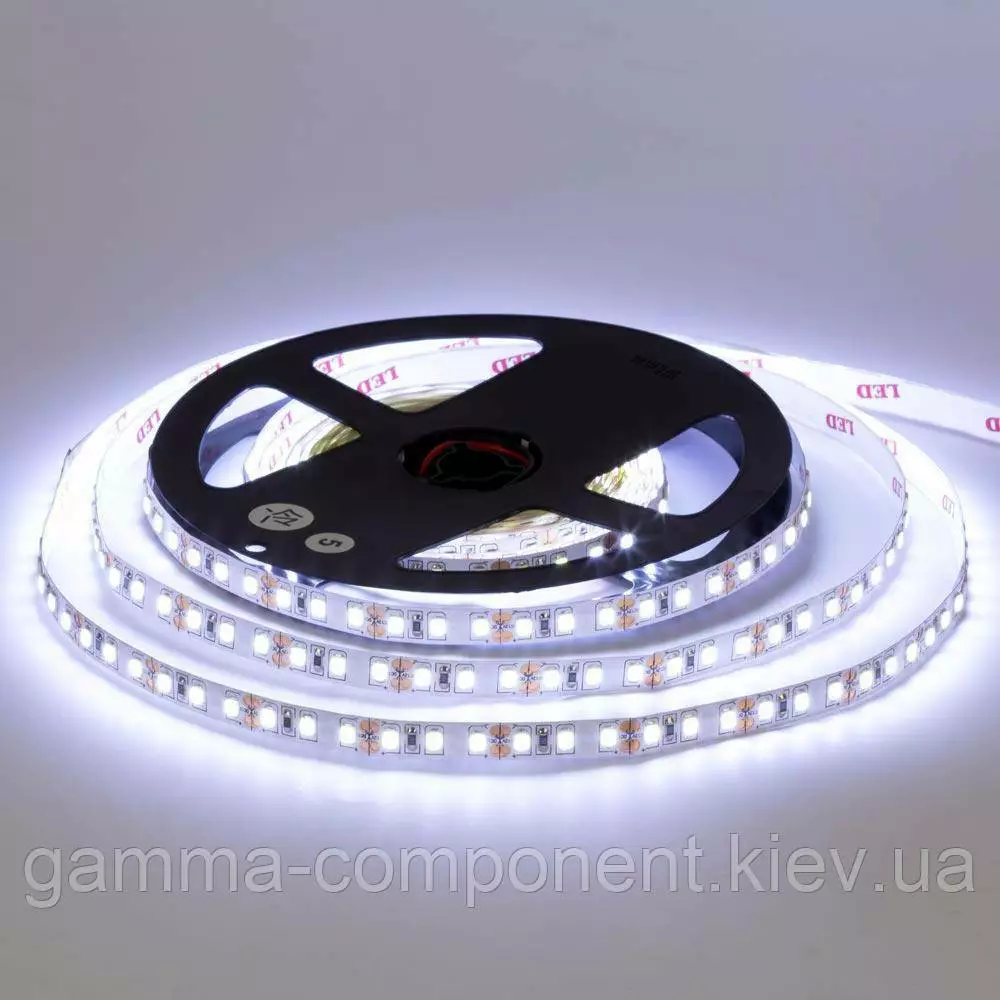 Світлодіодна стрічка білого кольору з температурою світіння 7000К-8000К зі світлодіодами SMD 2835 щільністю розміщення 120 лід на метр відрізняється максимальним рівнем яскравості і відносно невисокою споживаної потужністю 9,6 Вт/м. Це гарантовано забезпечить Вам чудову і яскраву підсвітку.