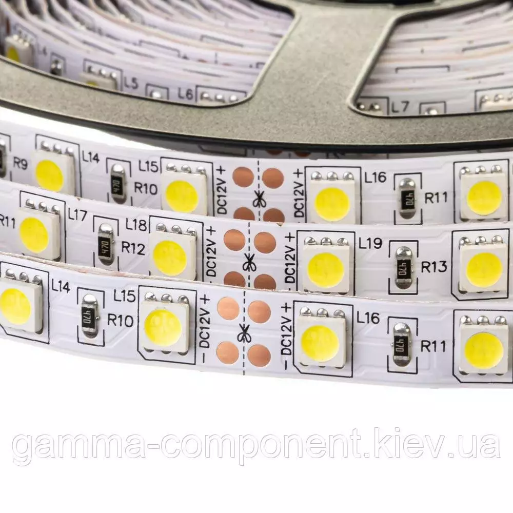 Світлодіодна стрічка білого кольору з температурою світіння 7000К-8000К зі світлодіодами SMD 5050 щільністю розміщення 60 лід на метр відрізняється максимальним рівнем яскравості і відносно невисокою споживаної потужністю 14,4 Вт/м. Це гарантовано забезпечить Вам чудову і яскраву підсвітку.