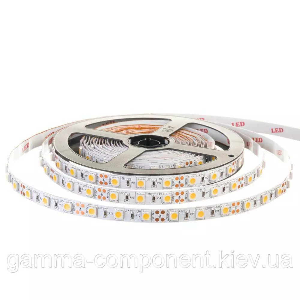 Світлодіодна стрічка білого кольору з температурою світіння 2700К-3500К зі світлодіодами SMD 5050 щільністю розміщення 60 лід на метр відрізняється максимальним рівнем яскравості і відносно невисокою споживаної потужністю 14,4 Вт/м. Це гарантовано забезпечить Вам чудову і яскраву підсвітку.