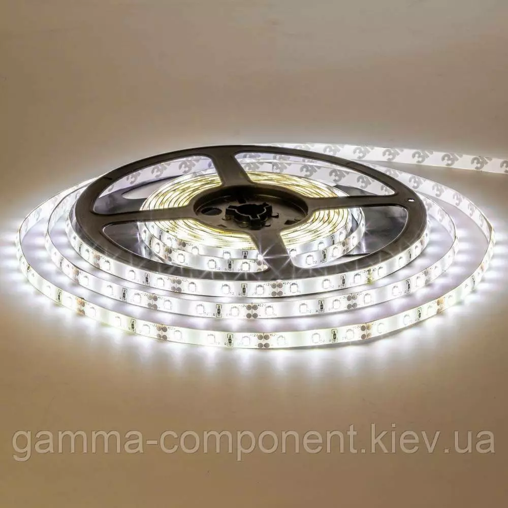 Led стрічка зі світлодіодами SMD 2835 і щільністю розміщення 60 лід на метр випромінює білий світ з температурою світіння 7000К-8000К.