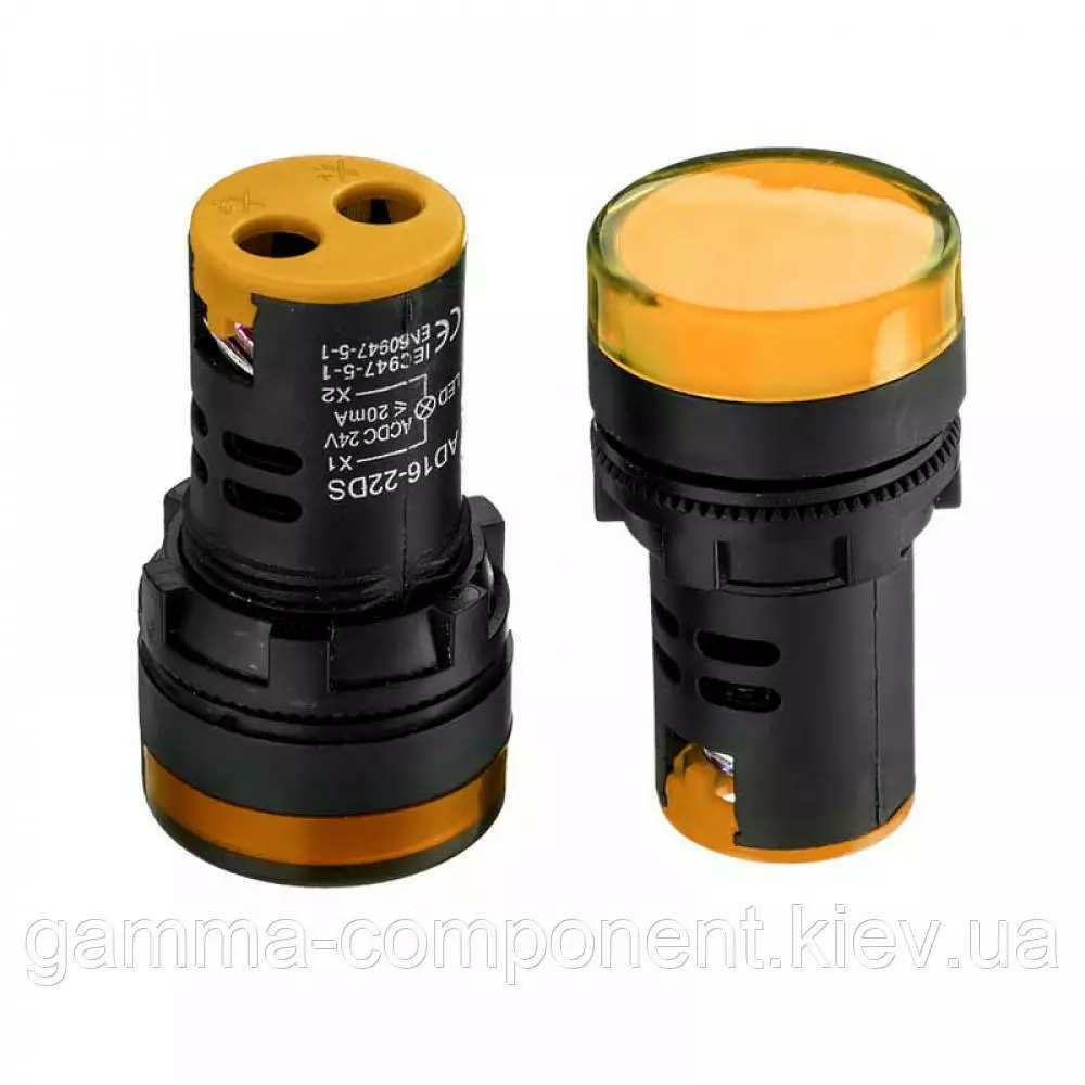 Світлодіодний індикатор AD16-22DS, 220VAC, жовтий