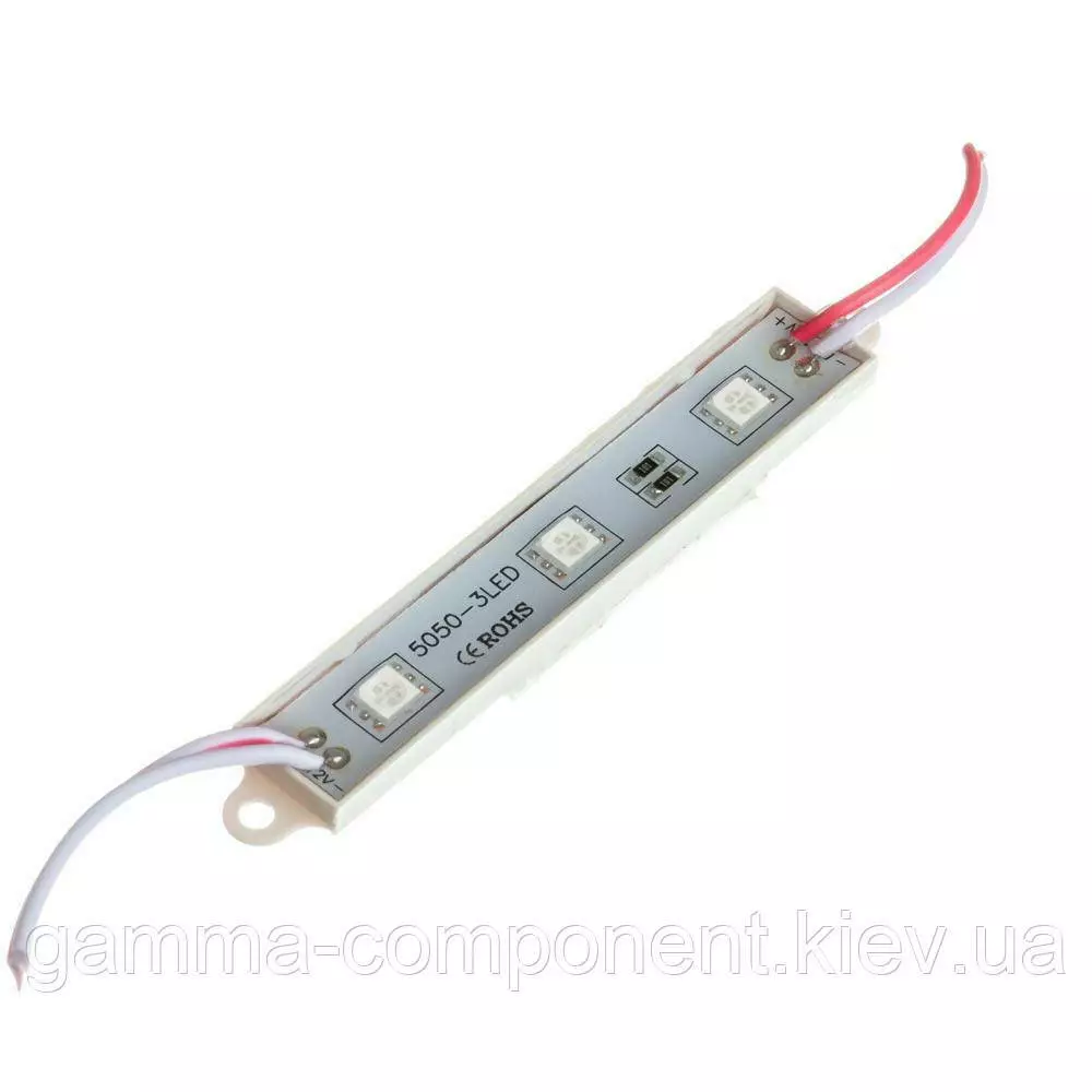 Даний led модуль з трьома світлодіодами smd 5050 в основному застосовується для виготовлення світлової зовнішньої реклами. Широке застосування модуля при виготовленні рекламних конструкцій обумовлюється економічністю, надійністю і компактністю.