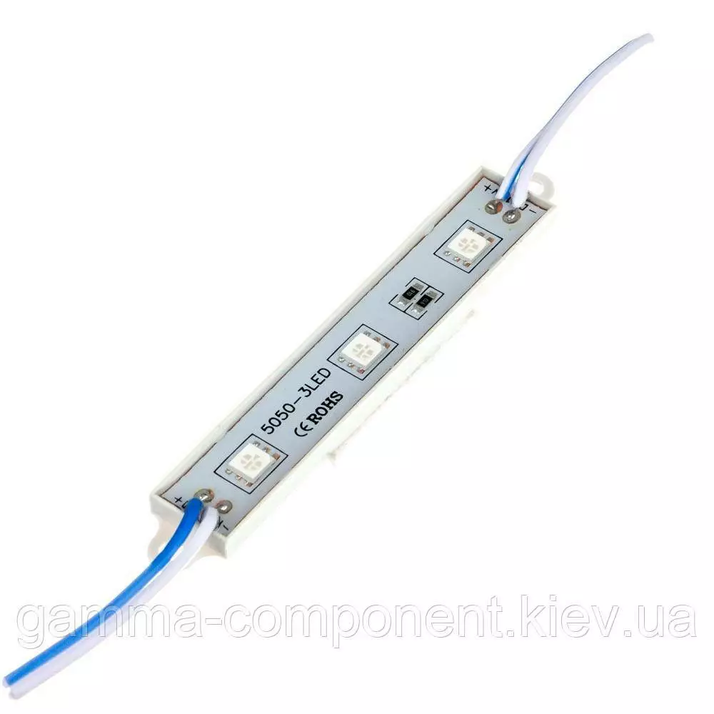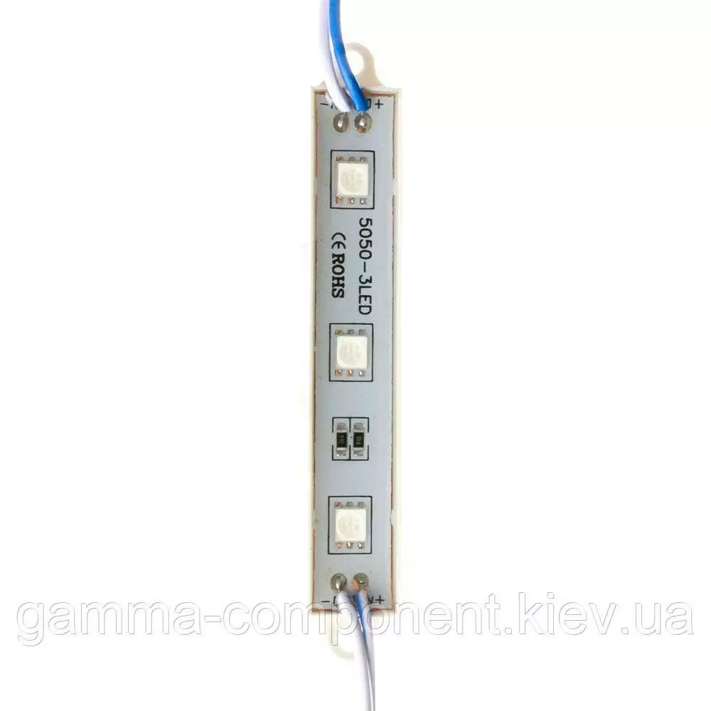 Даний led модуль з трьома світлодіодами smd 5050 в основному застосовується для виготовлення світлової зовнішньої реклами. Широке застосування модуля при виготовленні рекламних конструкцій обумовлюється економічністю, надійністю і компактністю.