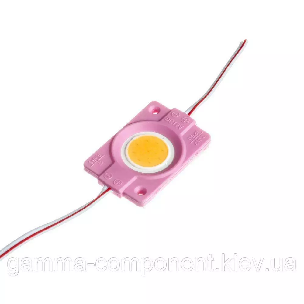 Колір світіння – рожевий (Pink). Споживана потужність одного модуля становить 2,4 Вт. Напруга живлення 12 вольт. Клас модуля захисту - IP65, з'єднання двухпроводное. Термін служби – 30 000 годин.