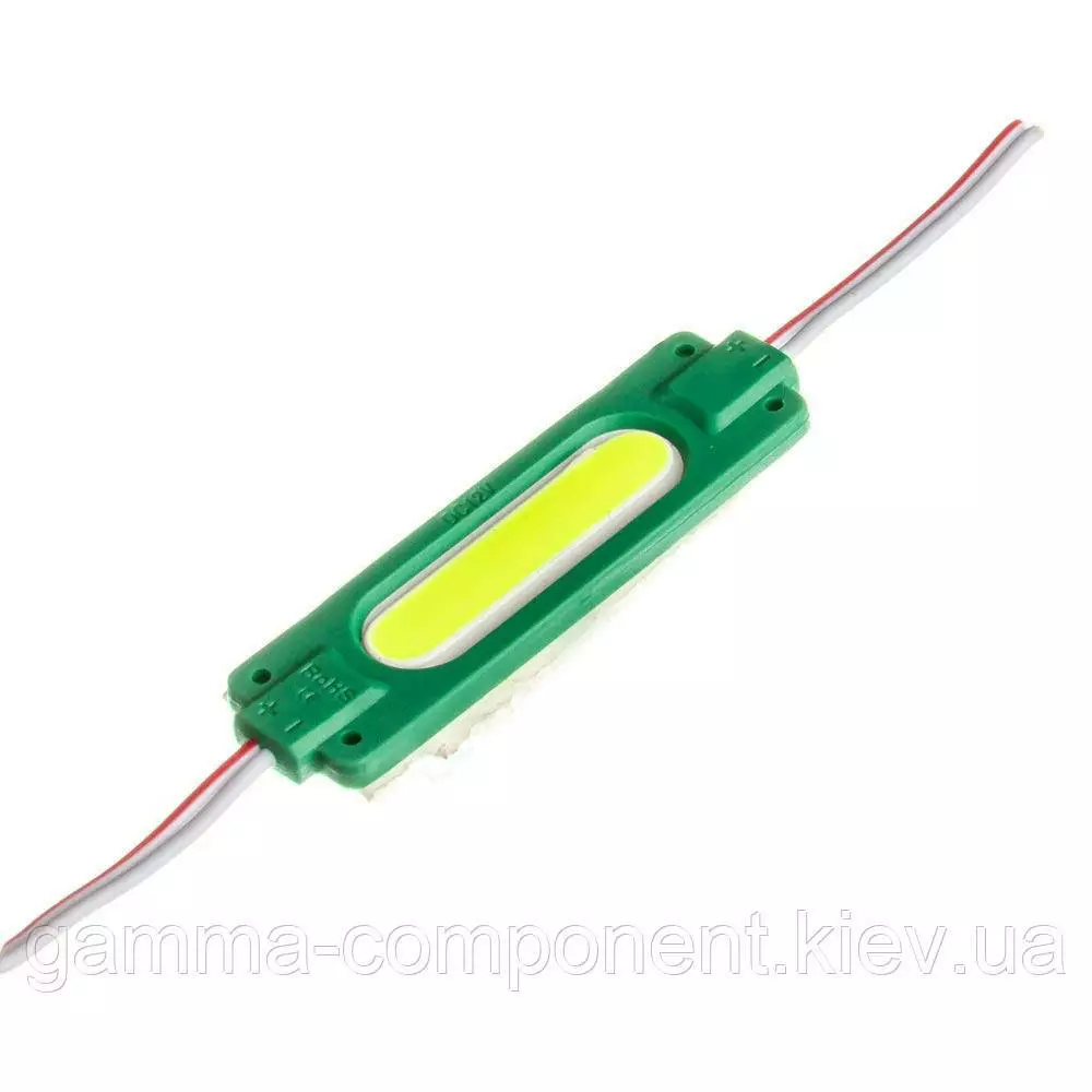 Даний led модуль зі світлодіодом COB овальної форми. Колір світіння – зелений. Інші кольори в асортименті: холодний білий, синій, червоний, рожевий.