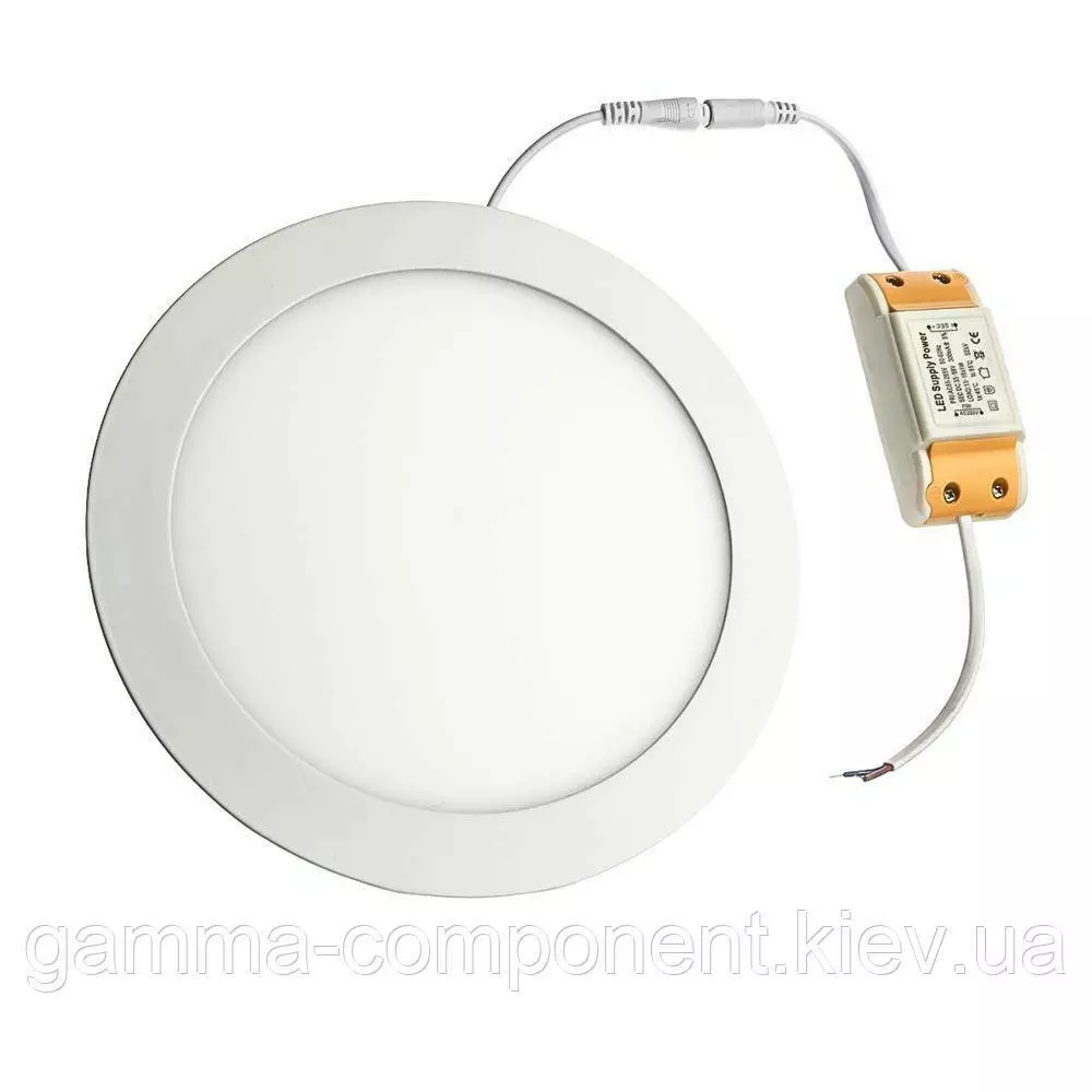Надтонкий корпус розміром 225*225*20 mm круглої форми виконаний з алюмінію, який сприяє відведенню тепла приладу. Завдяки тонкому корпусу лід світильник можна з легкістю використовувати для монтажу в підвісні стелі з невеликим простором до стелі. Робоча напруга світильника від 85V до 265V. А відсутність крихких елементів робить стельові світильники led стійкими до механічних пошкоджень. Більше того, термін служби 40 000 годин дає можливість насолоджуватися світильником тривалий час.