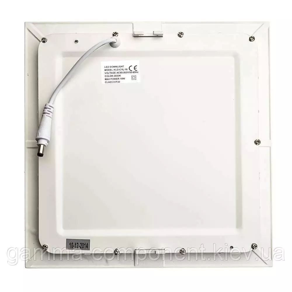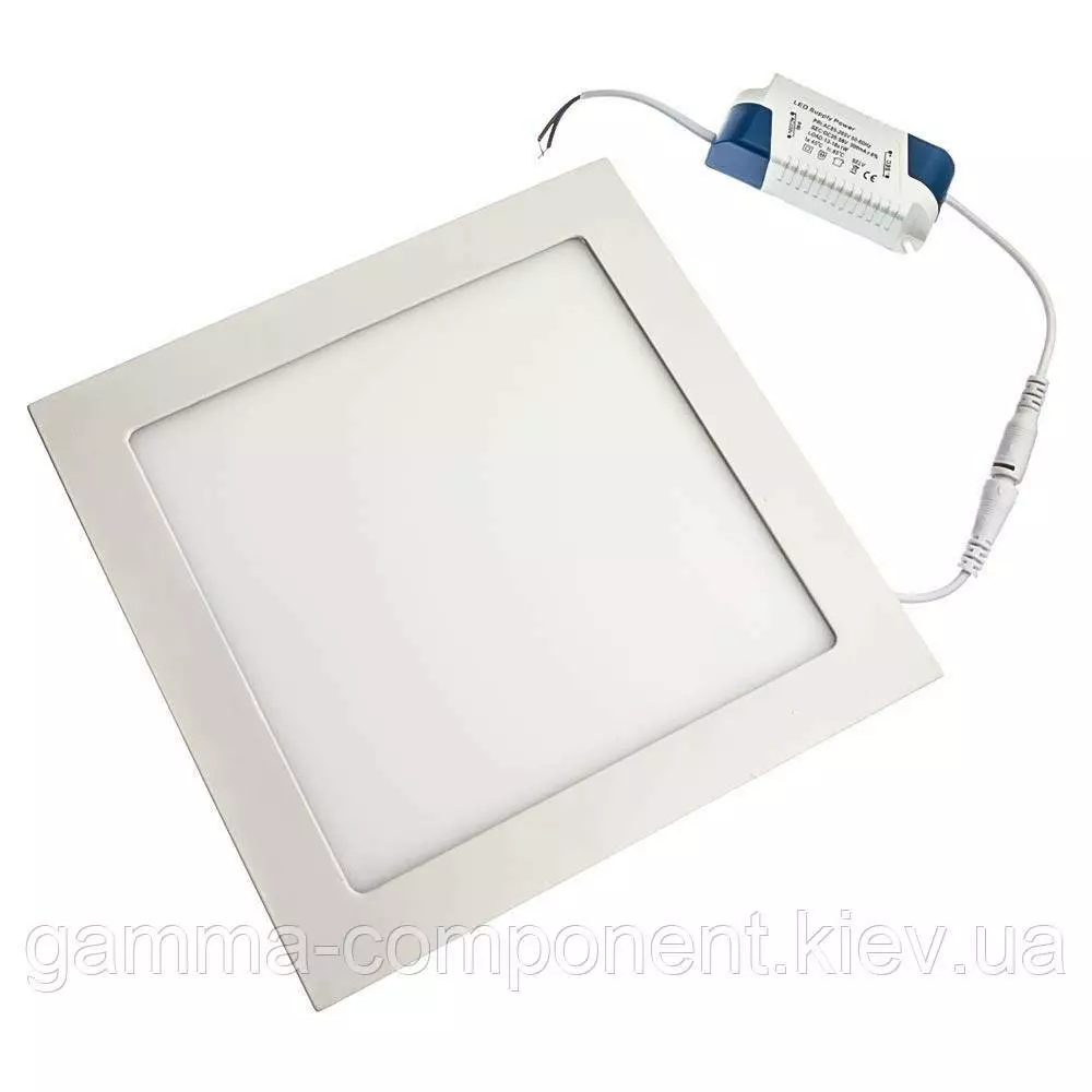 Надтонкий корпус розміром 297*267*25 mm квадратної форми виконаний з алюмінію, який сприяє відведенню тепла приладу. Завдяки тонкому корпусу лід світильник можна з легкістю використовувати для монтажу в підвісні стелі з невеликим простором до стелі. Робоча напруга світильника від 85V до 265V. А відсутність крихких елементів робить стельові світильники led стійкими до механічних пошкоджень. Більше того, термін служби 40 000 годин дає можливість насолоджуватися світильником тривалий час.