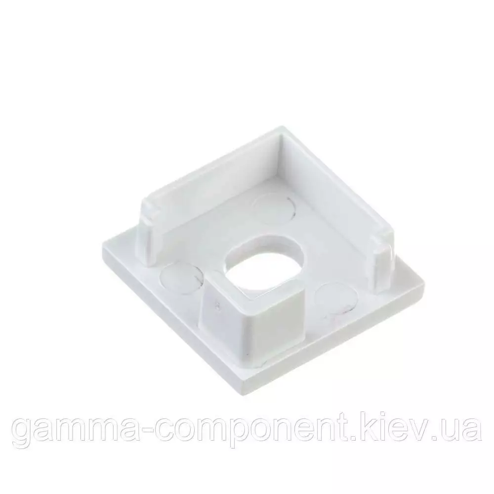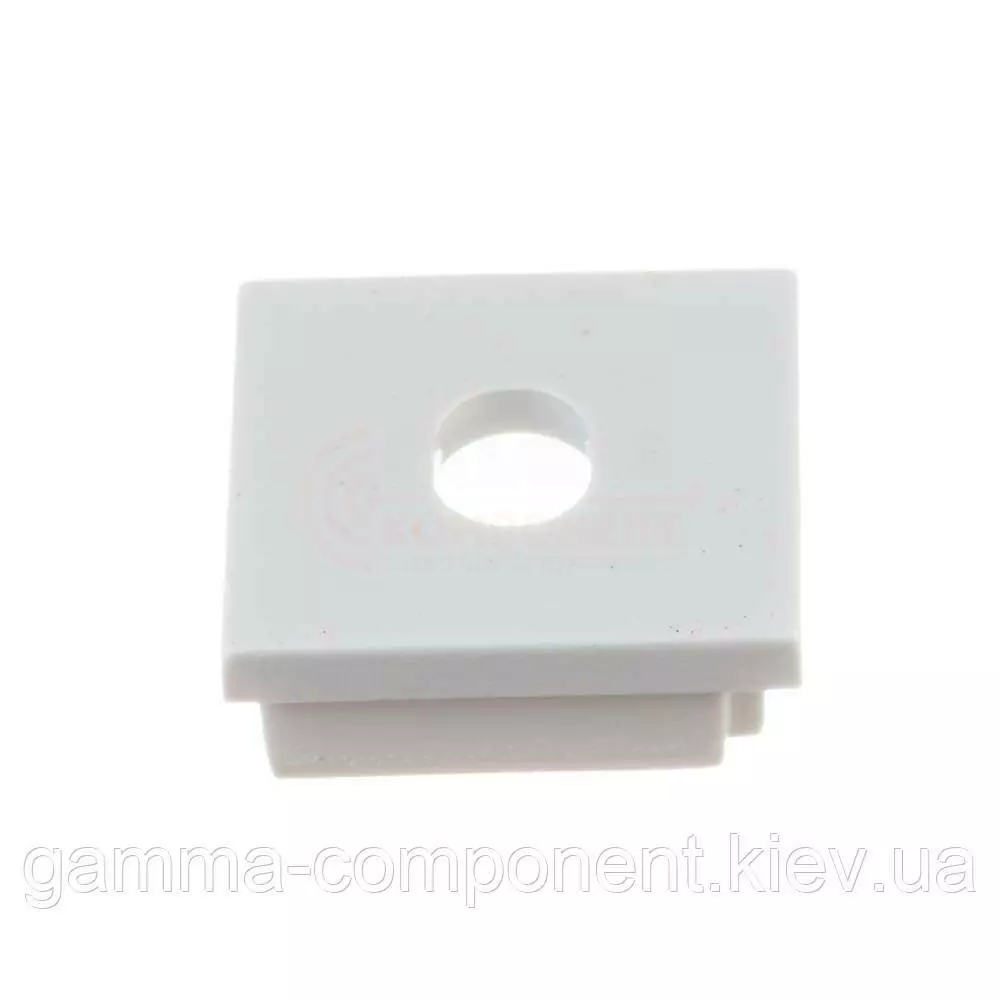 Заглушка є комплектуючим до алюмінієвого квадратному профілю ПФ-9 призначена для захисту оптичних елементів від різних забруднень, має отвір для проводів. Бічна заглушка виготовлена з ударостійкого пластику і має отвори для подачі дроти електроживлення. Надійно закриває внутрішню порожнину профілю від різних пошкоджень. Може використовуватися як фіксатор розсіювача світла. При необхідності ремонту освітлення просто виймається з профілю.